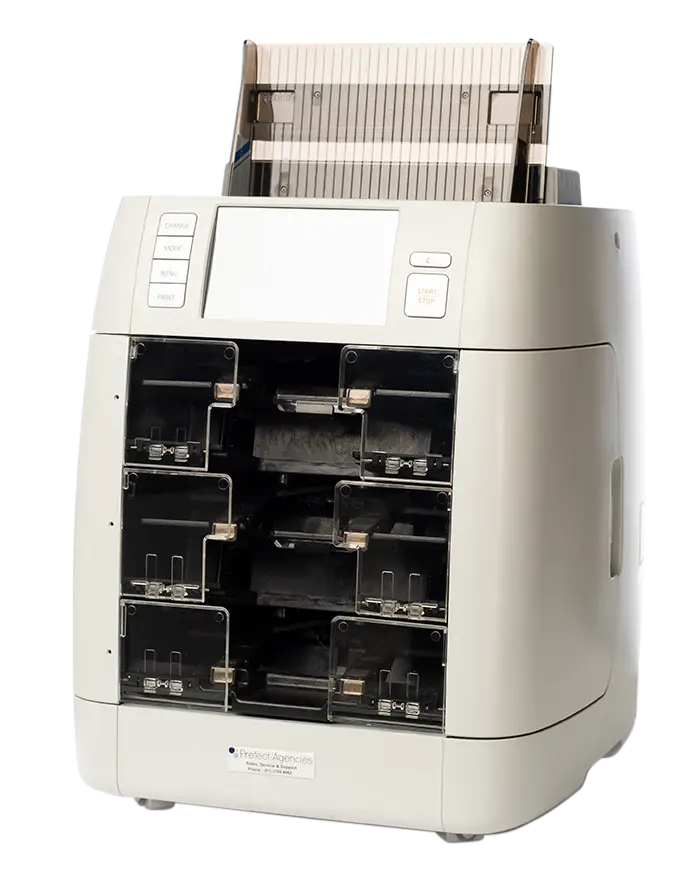 SB-3000, one of the most advanced note processing system on the market. The unit has the world’s smallest footprint for a 3 pocket sorter, so is ideal for venues and count rooms with restricted space. SB-3000 has various and useful functions to keep up with growing customers requirements. With modern design, 4″ TFT Colour LCD and user-friendly interface.